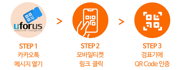 A. 관람 당일 정오 이전 카카오 Uforus 알림톡으로 모바일티켓이 발송됩니다.